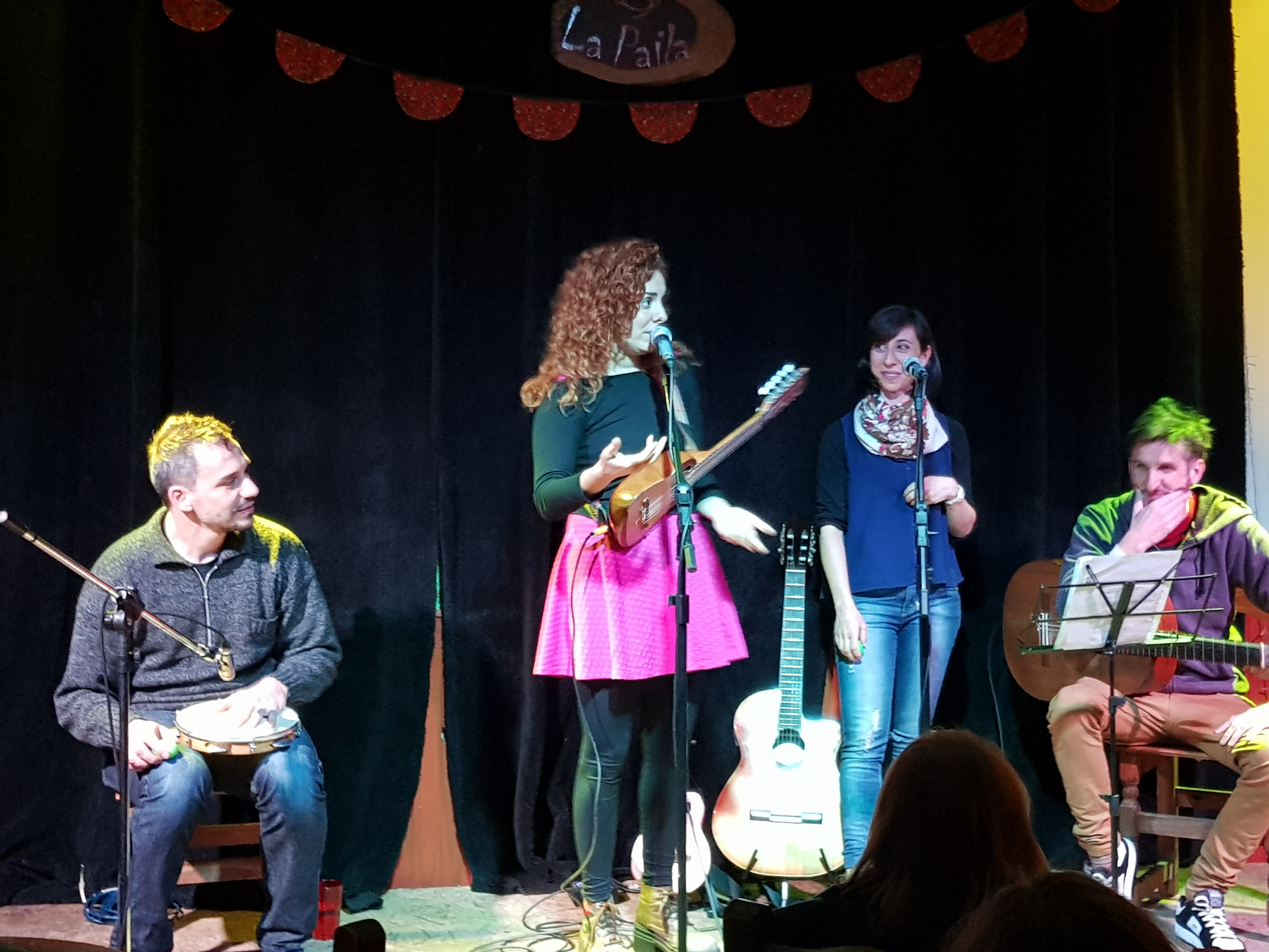 Los del primer grupo, o parte de ellos, deciden acercarse a “La Paila” . Allí el aroma de la comida norteña invita a quedarse. Ambiente ameno, un par de guitarras aguardan silenciosas en un escenario aun vacío. Las sillas de mimbres van ocupándose paulatinamente.