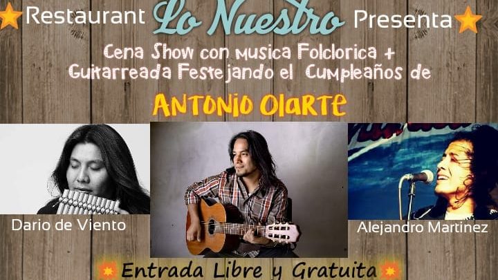 Se presentara el cantante criollo Antonio Olarte, que deslumbrará con su guitarra, en un reportorio que abordará lo mejor del Folklore Argentino.