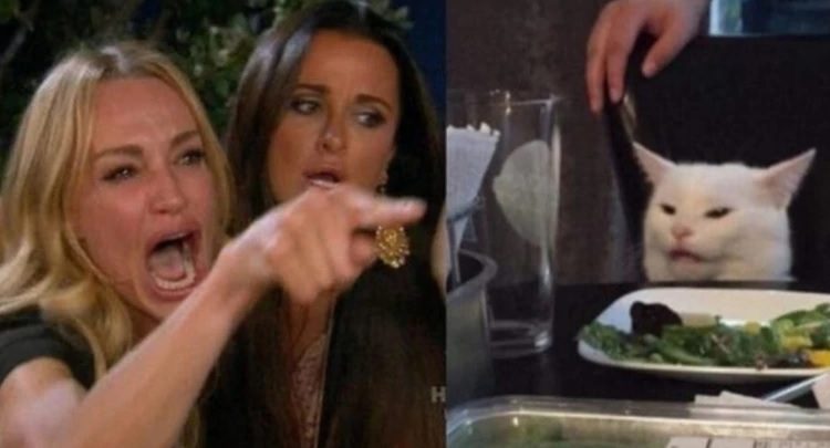 En los últimos días se ha vuelto viral el meme de una mujer gritándole a un gato blanco sentado en una mesa, creación que ya se perfila como una de las más populares del año.