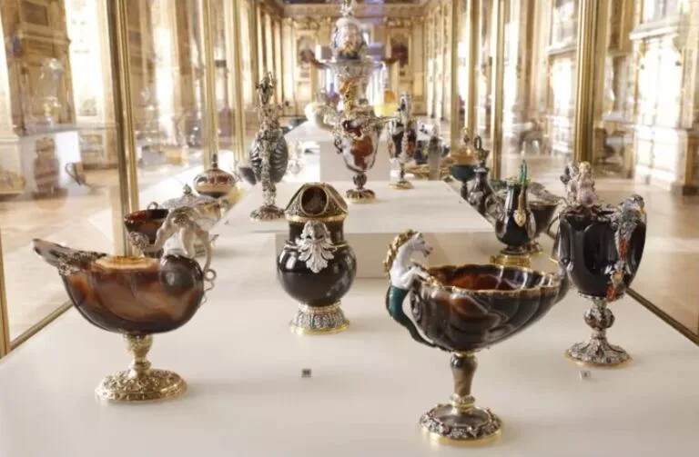 La Galería de Apolo es la cuna de una colección vasta, que incluye la colección de piedras preciosas de Luis XIV y los reconocidos diamantes de la corona. Aunque grandes piezas históricas como el famoso diamante Régent (de 140 quilates) permanecen a salvo, el foco está en las piezas sustraídas de la colección de Eugenia.