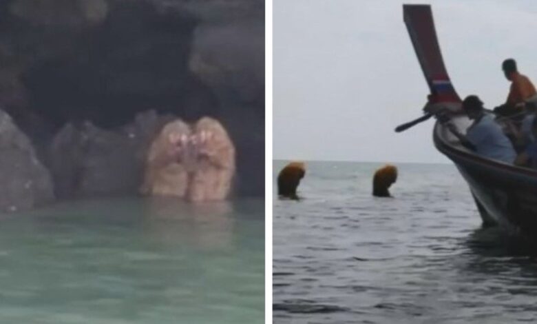 Un grupo de turistas grabó a una extrañas criaturas con las que se encontró en una playa de Tailandia y el video se viralizó en las redes sociales.