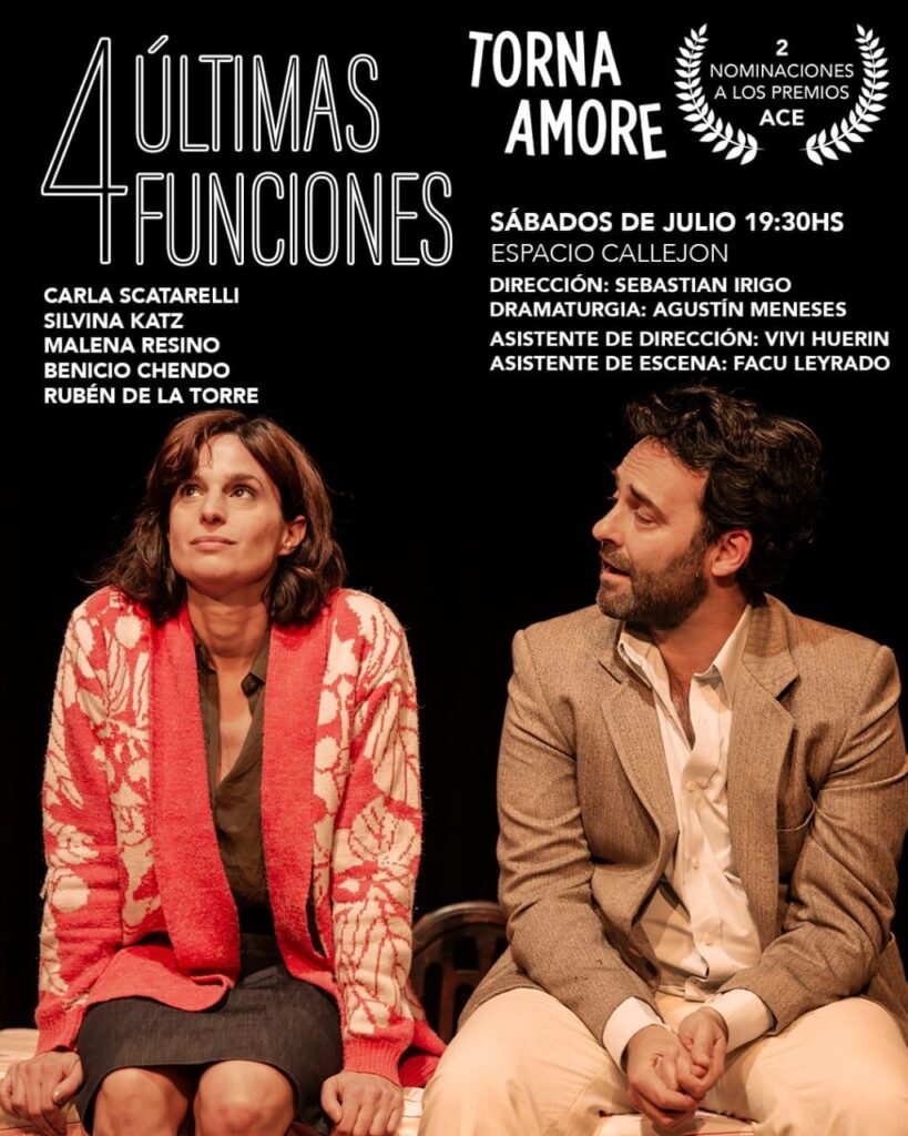 Llegan las últimas 4 funciones de “TORNA AMORE”, una obra escrita por Agustín Meneses y dirigida por Sebastián Irigo.