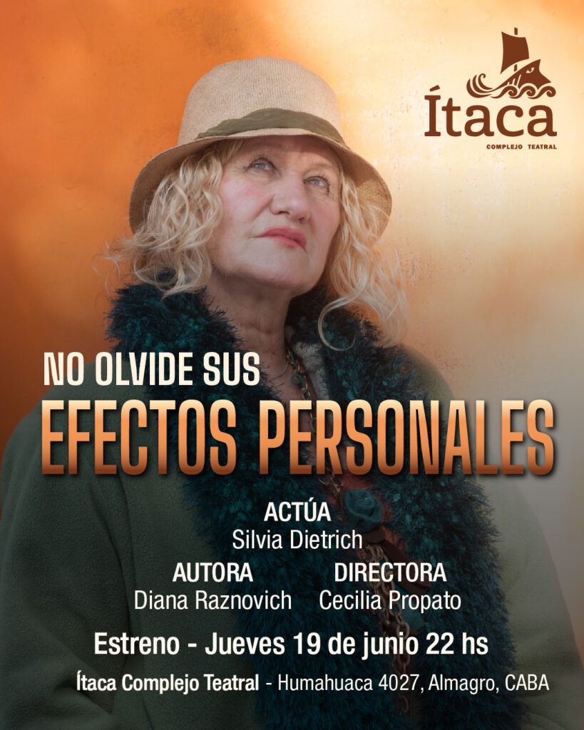 “No olvide sus efectos personales”, escrita por Diana Raznovich y dirigida por Cecilia Propato, es mucho más que un monólogo: es un espejo agrietado en el que cada espectador encuentra un fragmento olvidado de sí mismo. Con la actuación potente y sensible de Silvia Dietrich, la obra se convierte en un viaje introspectivo entre valijas ajenas, preguntas sin respuesta y recuerdos que nunca pasaron por migraciones.