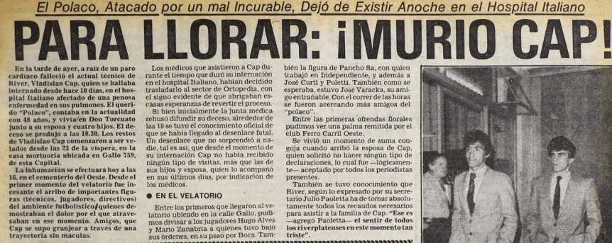 Mientras intentaba reorganizar al equipo, Cap libraba una batalla silenciosa. Sufría cáncer de pulmón. Su último encuentro fue el 29 de agosto de 1982. Murió el 14 de septiembre, con apenas 48 años, siendo todavía entrenador de River Plate.