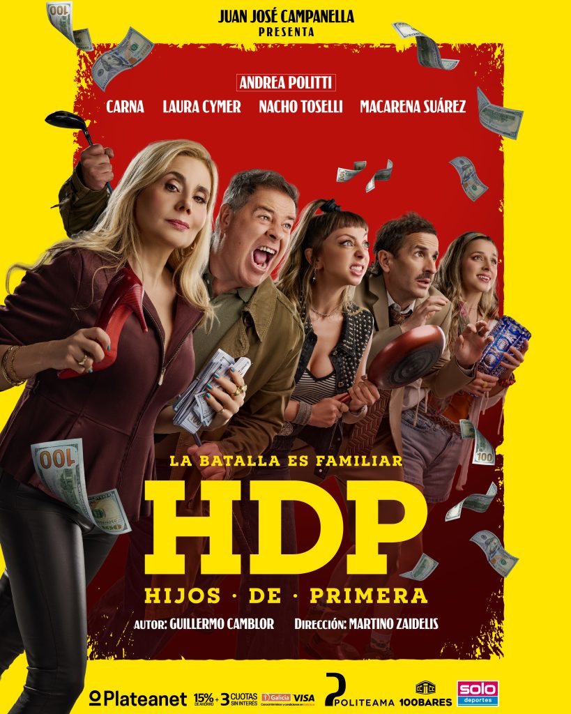 Desde el próximo 14 de mayo, el Teatro Politeama abrirá sus puertas para el estreno de HDP Hijos de Primera, una nueva comedia teatral argentina que promete risas, enredos y una historia donde la ambición familiar se descontrola. La obra marca además el debut en teatro de Martino Zaidelis, reconocido director de cine detrás de títulos como La extorsión, Campamento de mamá y Re loca.
